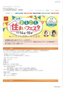 【セミナー/立川/快適!まるごと住まいフェスタ】11月15日セミナー致します。
