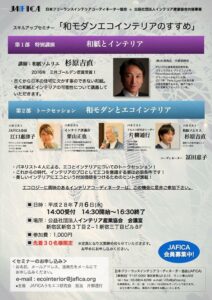 スキルアップセミナー 「和モダンエコインテリアのすすめ」 機能的で美しく、そしてエコである事、、 「和紙」という日本の伝統文化から学びます。 パネリストとして江口も参加 時代を担うコーディネ―ターの方々、ご参加をお待ちしております。