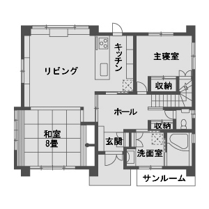 こだわりを活かす。生活動線を整理する。 キッチンリビングを寛ぎの場とし景色を日常に取り込む。