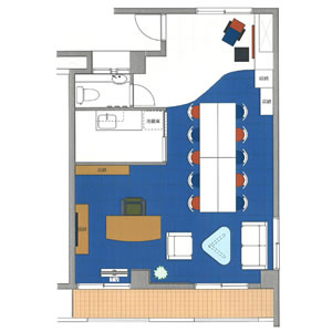 会議室と社長室を眺めの良いフロアーに新設。 社長さま所有び2枚の絵画をもとに赤と青と白の爽やかな空間をデザインしました。