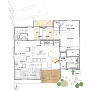 親世帯1F 子世帯2F 完全二世帯ながら大家族ならではのメリットを共有