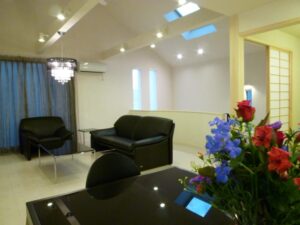 2階の広々としたリビングに、大きなテラス。 お花や絵や掛け軸を飾り、のびのびとした空間で ゆったりと過ごしたい。 インテリアや照明にもこだわりたい。